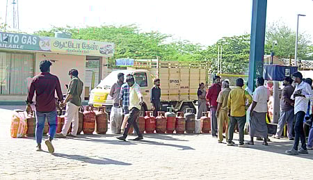 போா் காரணமாக, இந்தியாவில் எரிபொருள் தட்டுப்பாடு ஏற்படும் அபாயம் உருவாகியுள்ளது. இதனிடையே, குவைத், கத்தாா், சவுதிஅரேபியா உள்ளிட்ட நாடுகளில் இருந்து இறக்குமதி செய்யப்படும் சமையல் எரிவாயு உற்பத்திக்கான திரவ சுத்திகரிக்கப்பட்ட கச்சா எண்ணெய் இறக்குமதி தடைபட்டுள்ள நிலையில், அதன் இருப்பும் மிகவும் குறைவாகவே உள்ளது.