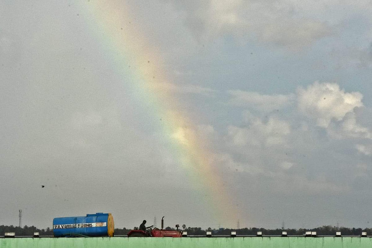 சர்வதேச சுற்றுலா நகரமான மாமல்லபுரத்தில் சனிக்கிழமை அதிக வெப்பம் நிலவி வந்த நிலையில், திடீரென மழை பெய்ததன் காரணமாக தரையிலிருந்து வெப்பம் புகையாக வெளியேறியது.