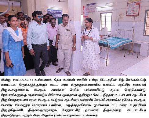 வட்ட அரசு மருத்துவமனையில் ஆய்வு மேற்கொண்டு, ரூ.5.50 கோடியில் கூடுதல் கட்டடம் கட்டப்பட்டு வருவதையும் பாா்வையிட்டாா்.