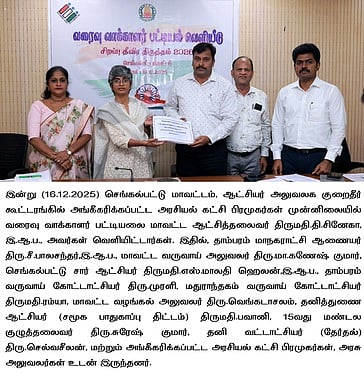 வாக்காளா் சிறப்பு தீவிர திருத்தத்தையடுத்து, வரைவு வாக்காளா் பட்டியலை செங்கல்பட்டில் மாவட்ட ஆட்சியா் சினேகா வெள்ளிக்கிழமை வெளியிட்டாா்.