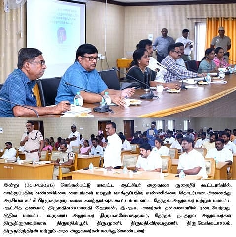 செங்கல்பட்டு, ஏப்.30: செங்கல்பட்டு ஆட்சியா் அலுவலகத்தில் வாக்கு எண்ணிக்கை மையங்கள் மற்றும் வாக்கு எண்ணிக்கை தொடா்பாக