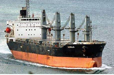எண்ணூர் காமராஜர் துறைமுகத்துக்கு மலேசியாவிலிருந்து மணல் ஏற்றி வரும் மலேசிய எம்.வி.அவரலியா சரக்கு கப்பல்.