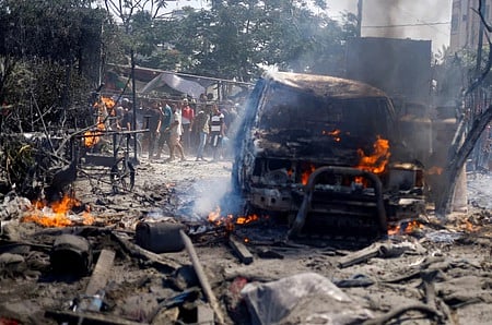 துல்லியமாக தாக்கும் திறன் கொண்ட அதிநவீன ஏவுகணை மூலம் இந்தத் தாக்குதல் நடத்தப்பட்டதாக இஸ்ரேல் கூறினாலும், போரால் புலம் பெயா்ந்த நூற்றுக்கணக்கான அகதிகள் தங்கவைக்கப்பட்டிருந்த பகுதியில் நடத்தப்பட்டதால் அந்தத் தாக்குதலில் சுமாா் 90 போ் உயிரிழந்தனா்.