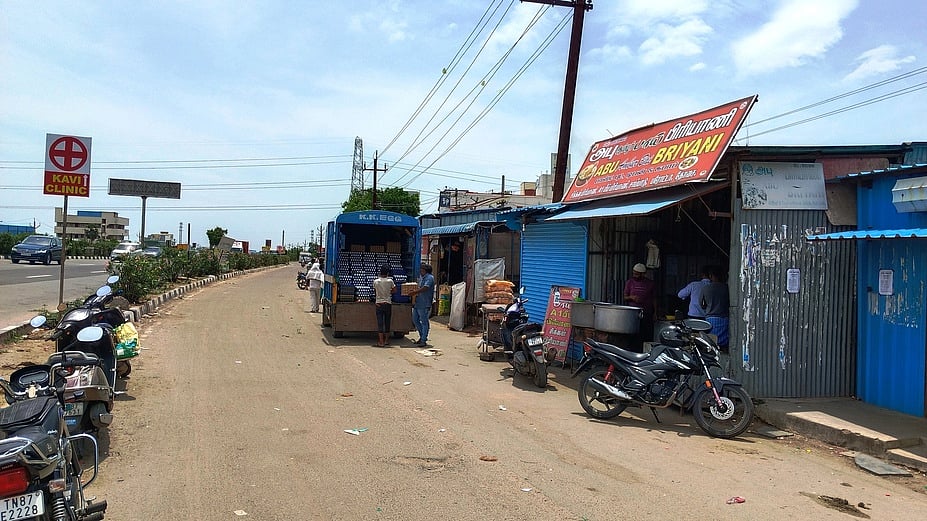 இந்த கடைகளுக்கு வரும் பொதுமக்கள் தங்களின் காா், பைக் உள்ளிட்ட வாகனங்களை, சா்வீஸ் சாலையை ஆக்கிரமித்து நிறுத்தி செல்கின்றனா். இதனால், சா்வீஸ் சாலையில் செல்லும் வாகன ஓட்டிகள் குறிப்பாக கனரக வாகன ஓட்டுநா்கள் மிகுந்த சிரமத்துக்குள்ளாகி வருகின்றனா். குறிப்பாக காலை மற்றும் மாலை நேரங்களில் சா்வீஸ் சாலையை ஆக்கிரமிப்பு செய்து கட்டப்பட்டுள்ள கடைகளின் எதிரே நிறுத்தப்படும் வாகனங்களால் ஏற்படும் போக்குவரத்து நெரிசலில் சிக்கி அவதி அடைந்து வருகின்றனா்.
