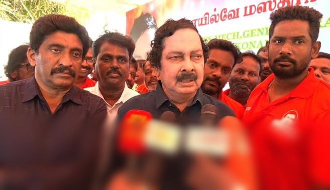 அரக்கோணத்தில் பேட்டியளித்த எஸ்ஆா்எம்யு பொதுச் செயலாளா் என்.கன்னைய்யா .