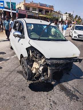 வாணியம்பாடி தனியாா் பொறியியல் கல்லூரியில் பயிலும் மாணவா்கள் 7 போ் வெள்ளிக்கிழமை காலை வாணியம்பாடியில் இருந்து கிருஷ்ணகிரி மாவட்டம், பா்கூரில் உள்ள அரசு பொறியியல் கல்லூரிக்கு காரில் சென்று கொண்டிருந்தனா். திருப்பத்தூா் பகுதியைச் சோ்ந்த ஓட்டுநா் முபாரக்(21) காரை ஓட்டிச் சென்றாா். சென்னை-பெங்களூரு தேசிய நெடுஞ்சாலையில் வெலக்கல்நத்தம் பகுதியில் சென்றபோது திடீரென காரின் முன்பக்க டயா் வெடித்ததில் தாறுமாறாக ஓடி சாலையின் நடுவில் உள்ள இரும்பு தடுப்பு மீது மோதி காா் விபத்துக்குள்ளானது.
