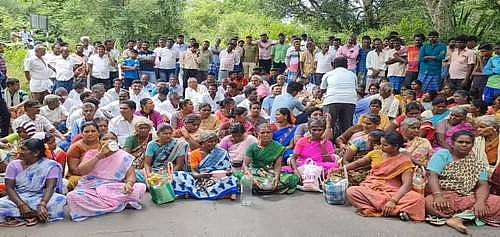 சாலையை விரிவுபடுத்தும் பணி தொடங்கினால் மட்டுமே போராட்டத்தை கைவிடுவோம் என்று மலை கிராம மக்கள் தொடர் போராட்டத்தில் ஈடுபட்டு வருகின்றனர்.