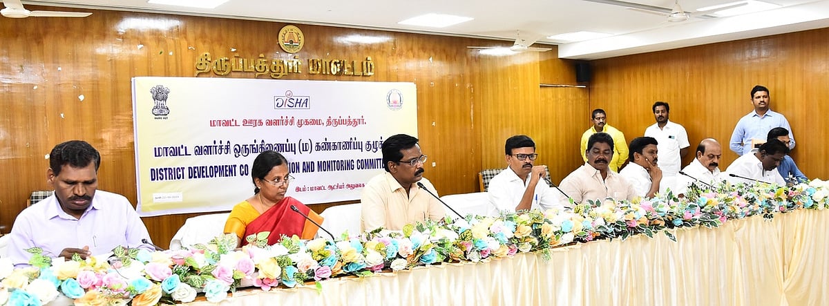 திருப்பத்தூா் மாவட்டத்தில் 21 துறைகளில் செயல்படுத்தப்பட்டு வரும் திட்டங்கள் குறித்தும், அத்திட்டங்களின் தற்போதைய நிலை குறித்தும் சம்பந்தப்பட்ட மாவட்ட அலுவலா்களுடனான ஆய்வுக் கூட்டம் செவ்வாய்க்கிழமை நடைபெற்றது.