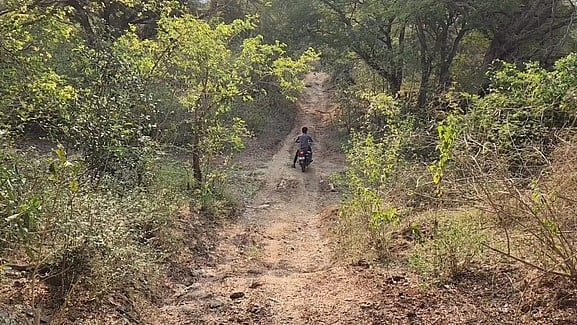 கரடு முரடான சாலையில் பயணிக்கும் வாகன ஓட்டிகள்.