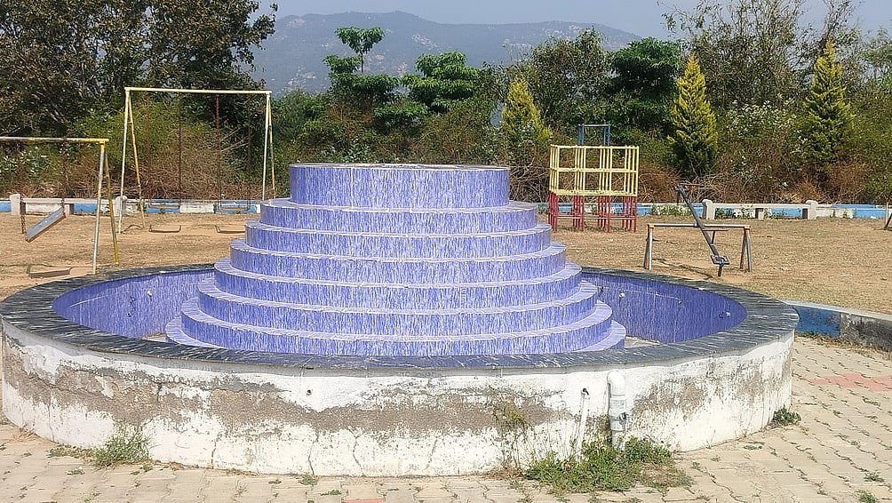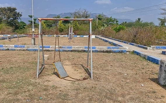 பழுதடைந்த விளையாட்டு உபகரணங்களுடன் பூங்கா.