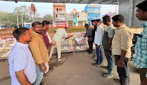 ஆம்பூரில் அரசியல் கட்சிகளின் சுவரொட்டிகளை அகற்றிய நகராட்சி பணியாளா்கள்.