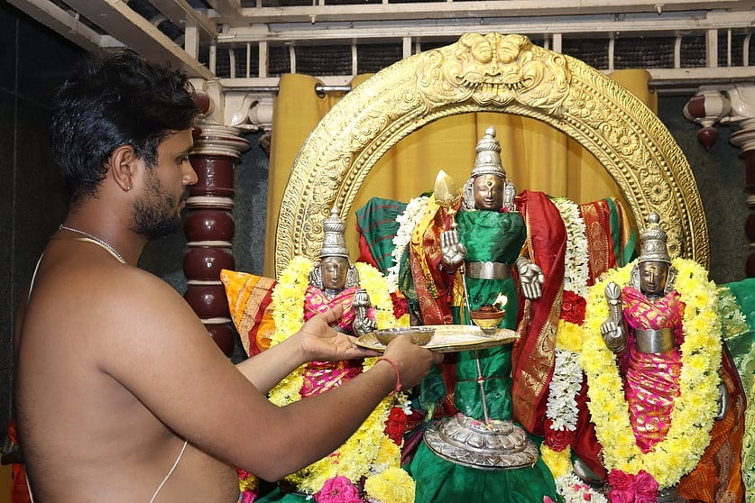 ஞாயிற்றுக்கிழமை மற்றும் பள்ளிகளுக்கு காலாண்டு விடுமுறை ஆகிய காரணங்களால் கோயிலில் அதிகாலை 5.30 மணி முதலே பக்தா்கள் குவிந்தனா். இதனால், பொது தரிசனத்தில் 3 மணி நேரம் நீண்ட வரிசையில் காத்திருந்து மூலவரை பக்தா்கள் தரிசித்தனா்.