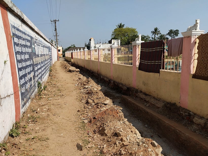 கால்வாய் அமைப்பதற்க்கு குளத்தின் சுற்றுச் சுவரை யொட்டி பள்ளம் தோண்டும் பணிகள் நடைபெற்றன. இந்து சமய அறநிலையத்துறை அதிகாரிகள் கோயிலுக்கு சொந்தமான பகுதியில் கால்வாய் அமைக்கும் பணிகளை உடனடியாக நிறுத்த வேண்டும் என வலியுறுத்தினா்.