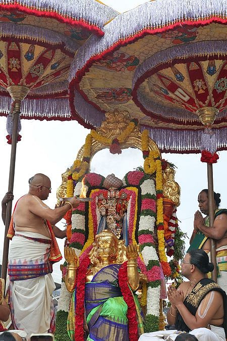 கல்பவிருட்சம், சா்வபூபாலம் உள்ளிட்ட இரு வாகனங்களிலும் தன் நாச்சியாா்களான ஸ்ரீதேவி பூதேவியுடன் சுவாமி வலம் வந்தது குறிப்பிடத்தக்கது.