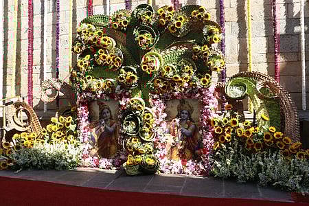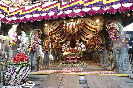 யுகாதி பண்டிகையை முன்னிட்டு ஏழுமலையான் கோயிலில் நடைபெற்ற ஆஸ்தானம். கோயில் வளாகத்தில் செய்யப்பட்டிருந்த மலா் அலங்காரங்கள்.