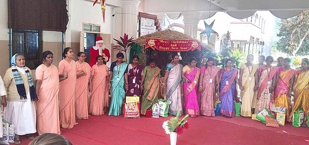 மாணவிகள் புத்தாடை அணிந்து வந்து கிறிஸ்துமஸ் விழாவை வரவேற்று பல்வேறு கலை நிகழ்ச்சிகளை நடத்தினா்.