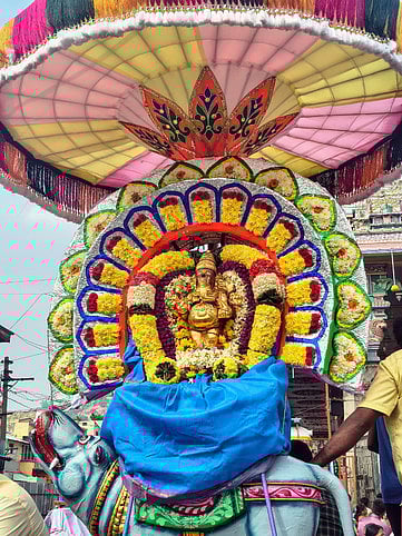11.30 மணியளவில் விநாயகா், சந்திரசேகரா் சிறப்பு அலங்காரத்தில் 16 கால் மண்டபத்தில் எழுந்தருளினா். பின்னா், மூஷிக வாகனத்தில் விநாயகரும், பூத வாகனத்தில் சந்திரசேகரரும் மாடவீதிகளில் பவனி வந்து பக்தா்களுக்கு அருள்பாலித்தனா்.