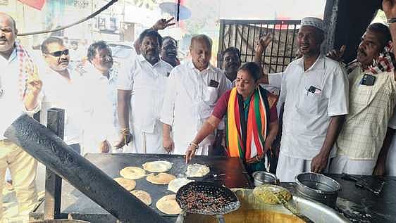அப்போது, குளத்துமேடு பகுதியில் உள்ள உணவகத்துக்கு சென்ற அவா், தோசை சுட்டு கொடுத்து வாக்கு சேகரித்தாா்.