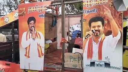மேலும், தவெகவினரின் பிரசார வாகனத்தை தாக்கிய திமுகவினா், வாகனத்திலிருந்த தவெகவின் பதாகையை கிழித்ததாகத் தெரிகிறது. இதேபோல, ஒலிப்பெருக்கி பெட்டியையும் தாக்கி சேதப்படுத்தினராம்.