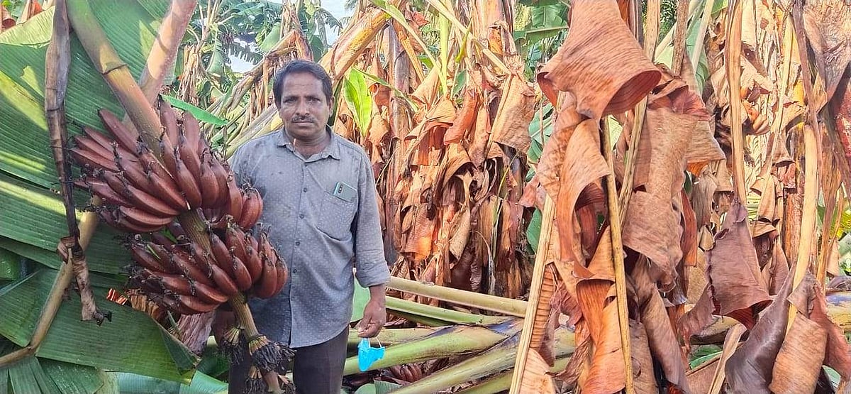 குடியாத்தம் அருகே சூறாவளி காற்றுக்கு 500-க்கும் மேற்பட்ட வாழை மரங்கள் சேதம்