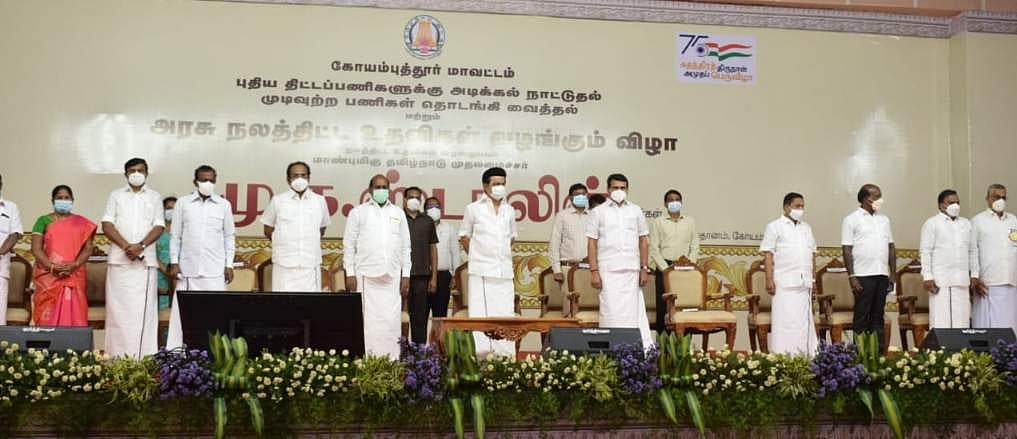 கோவையில் ரூ. 89.73 கோடி மதிப்பில் 128 புதிய திட்டப் பணிகளுக்கு முதல்வர் மு.க.ஸ்டாலின் இன்று அடிக்கல் நாட்டினார். தொடர்ந்து பல்வேறு நலத்திட்ட உதவிகளையும் அவர் வழங்கினார்.