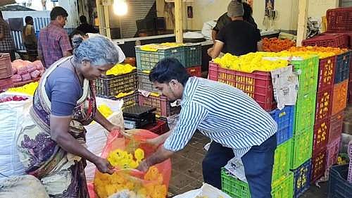 இந்நிலையில் அடுத்த வாரம் ஓணம் பண்டிகை வரவுள்ளதை ஒட்டியும், முகூர்த்த நாள்கள் தொடர்ச்சியாக வருவதனாலும் பூக்களின் விலை உயர்ந்துள்ளது. இது குறித்து பூ வியாபாரிகள் கூறுகையில், மல்லி, முல்லை பூக்கள் செப்டம்பர் 8 ஆம் தேதி வரை நல்ல விலை இருக்குமென தெரிவித்தனர்.