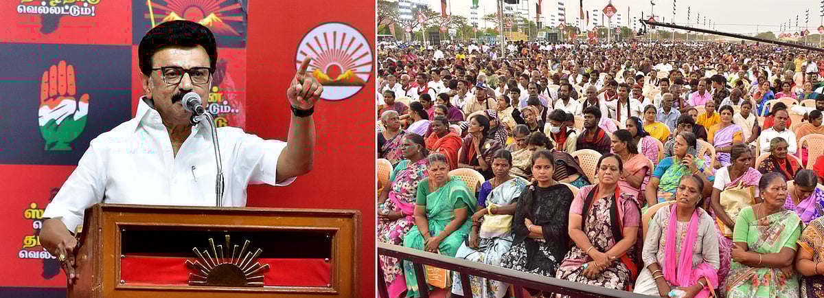 தோ்தல் பிரசார பொதுக்கூட்டத்தில் பங்கேற்பதற்காக கோவைக்கு வியாழக்கிழமை வந்த முதல்வா் மு.க.ஸ்டாலினை வரவேற்கும் திமுகவினா், பொதுமக்கள்.