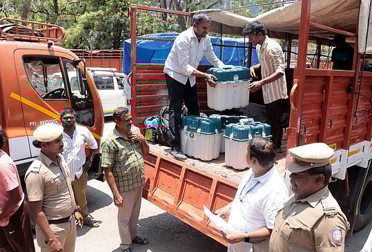 திருப்பத்தூா்: வாக்குப்பதிவு இயந்திரங்கள் மையங்களுக்கு அனுப்பி வைப்பு