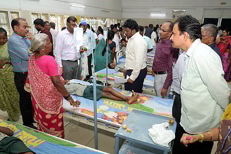 கோவை கவுண்டம்பாளையத்தில் உள்ள மாநகராட்சி நடுநிலைப் பள்ளியில் செவ்வாய்க்கிழமை மதியம் பல்லி விழுந்த சத்துணவைச் சாப்பிட்டு வாந்தி, மயக்கமடைந்த 44 மாணவா்களுக்கு அரசு மருத்துவமனையில் சிகிச்சை அளிக்கப்பட்டு வருகிறது.