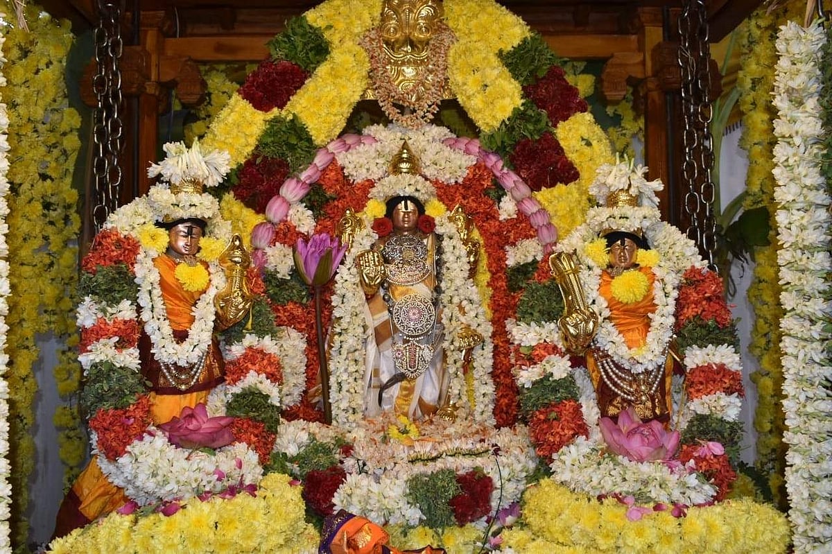 சமூக இடைவெளி கடைபிடிக்கப்பட்டு தேர் இழுத்துச்செல்லப்பட்டது. வழக்கமாக கோயில் முன்பு இருந்து வடம் பிடிக்கப்பட்ட தேர் ஈஸ்வரன் கோயில் வீதி, மணிக்கூண்டு, பன்னீர்செல்வம் பூங்கா வந்து பெரியமாரியம்மன் கோவில் முன்பு நிறுத்திவைக்கப்பட்டு பின்னர் மாலையில் பிரப்ரோடு, காமராஜர் வீதி வழியாக சென்று மீண்டும் கோவில் முன்பு நிலை நிறுத்தப்படும். ஆனால் இன்று தேர் எங்கும் நிறுத்தப்படாமல் இழுத்து செல்லப்பட்டது. நாளை (திங்கட்கிழமை) இரவு 7 மணிக்கு குதிரை வாகனத்தில் பெருமாள் எழுந்தருளி பக்தர்களுக்கு அருள் பாலிக்கிறார்.
