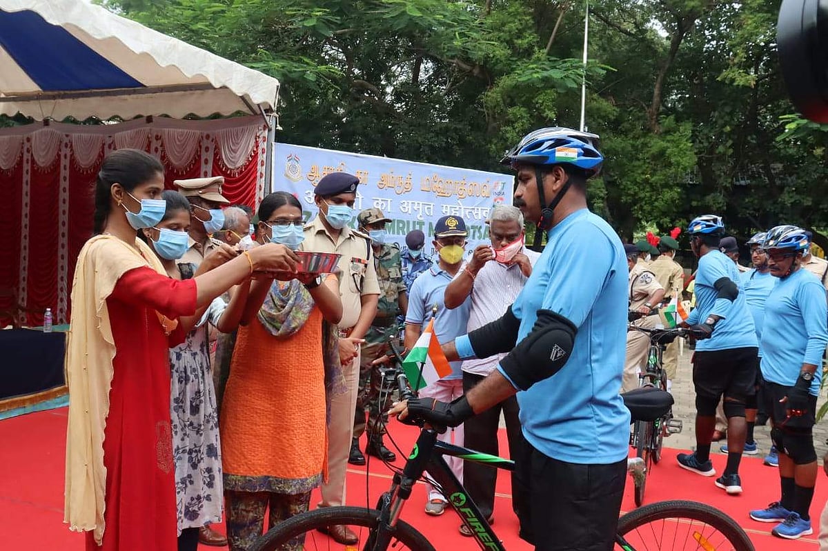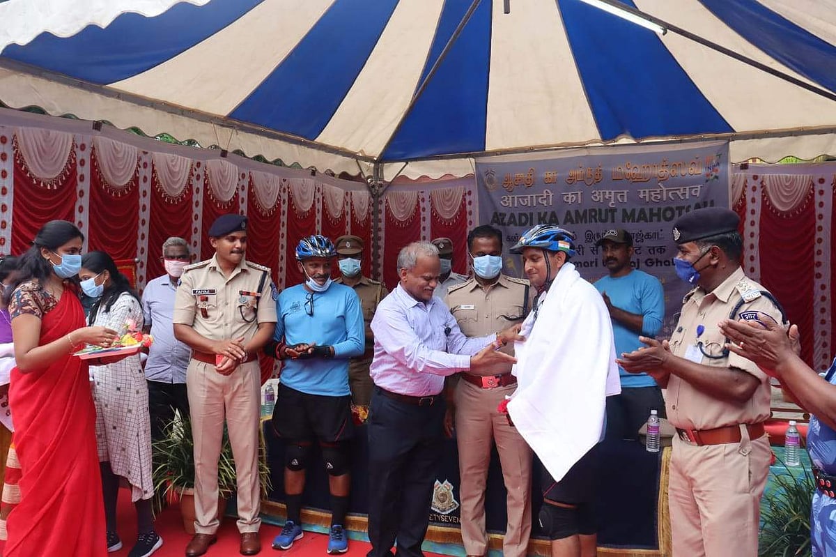 கன்னியாகுமரி-தில்லி வரை சிஆர்பிஎப் வீரர்கள் சைக்கிள் பேரணி: ஈரோட்டில் உற்சாக வரவேற்பு