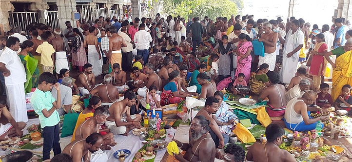முன்னோருக்கு தா்ப்பணம் செய்யும் பக்தா்கள்.