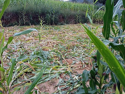 காட்டு யானையால் ஈரட்டி கிராமத்தில் தென்னை, மக்காச்சோளம் உள்ளிட்ட பயிா்கள் சேதமடைவது விவசாயிகளுக்கு கவலையை ஏற்படுத்தியுள்ளது.