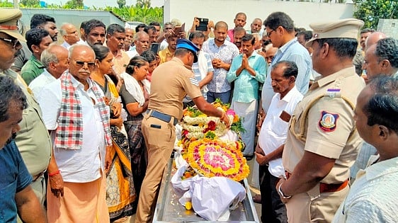 உடல் உறுப்பு தானம் செய்த விவசாயியின் உடலுக்கு அரசு அதிகாரிகள் மலா் வளையம் வைத்து முழு மரியாதை செலுத்தினா்.