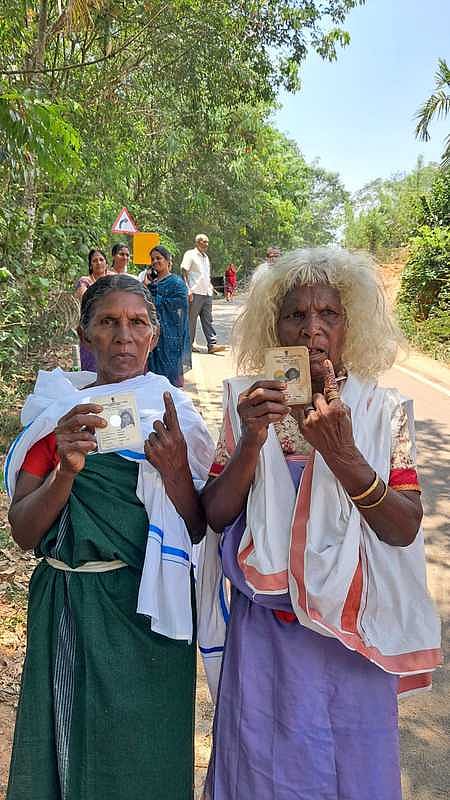 கூடலூா் தொகுதி, ஸ்ரீ மதுரை பள்ளி வாக்குச் சாவடியில் ஜனநாயக கடமை ஆற்ற வந்த பணியா் பழங்குடிகள்.