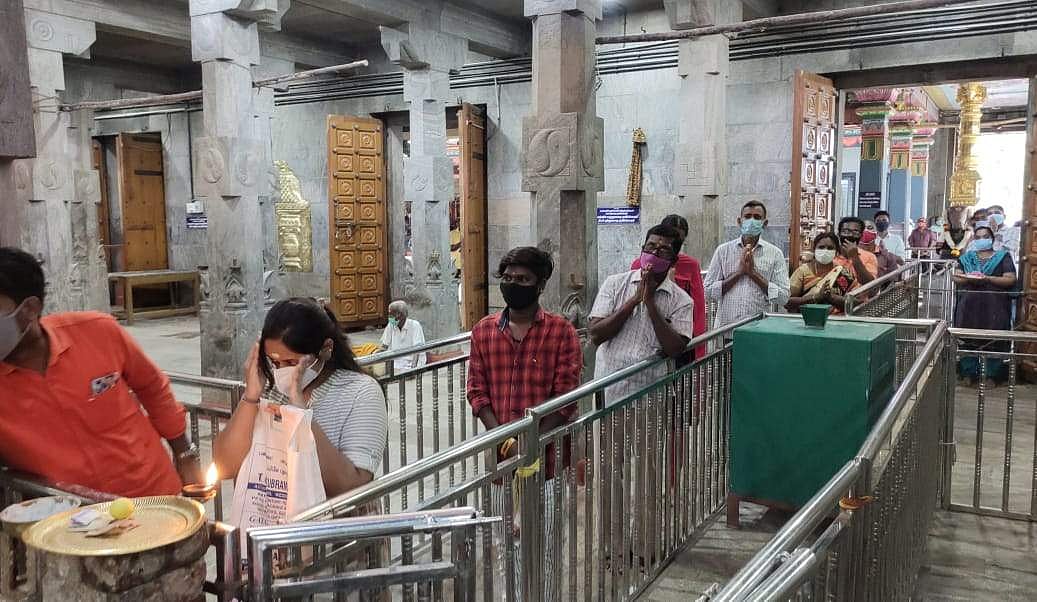 தமிழகம் முழுவதும் கரோனா நோய்த் தொற்று பரவலைக் கட்டுப்படுத்தும் வகையில் மே 10 ஆம் தேதி முதல் பொதுமுடக்கம் அமல்படுத்தப்பட்டுள்ளது. இந்த நிலையில், கரோனா நோய்த் தொற்று குறையத் தொடங்கியதைத் தொடர்ந்து பொதுமுடக்கத்தில் அளிக்கப்பட்டுள்ள தளர்வுகளின் அடிப்படையில் திங்கள்கிழமை முதல் வழிபாட்டுத் தலங்களை திறக்க அரசு அனுமதி உத்தரவிட்டுள்ளது.