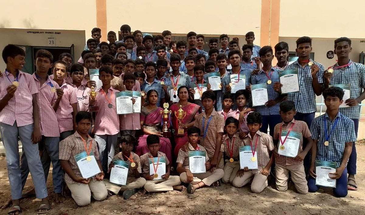 ஒட்டுமொத்த சாம்பியன் பட்டம் , தனி நபர் பட்டம் பெற்ற அவிநாசி அரசு ஆண்கள் பள்ளி மாணவர்கள்.