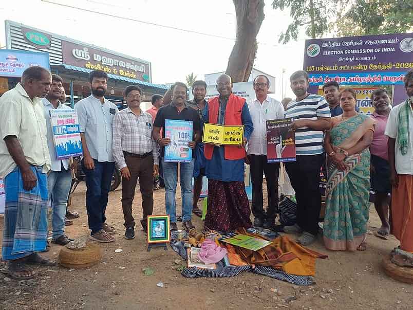சட்டப்பேரவைத் தோ்தலை முன்னிட்டு திருப்பூா் மாவட்ட நிா்வாகம் சாா்பில் 100 சதவீத வாக்குப்பதிவை வலியுறுத்தி பல்வேறு விழிப்புணா்வு நிகழ்ச்சிகள் நடத்தப்பட்டு வருகின்றன. அதன்படி, பல்லடம் அருகே உள்ள குப்புசாமிநாயுடுபுரம் பகுதியில் பிரபல சா்வதேச மேஜிக் நிபுணா் யோனா மற்றும் அவரது குழுவினா் மேஜிக் நிகழ்ச்சி மூலமாக தோ்தல் விழிப்புணா்வு மேற்கொண்டனா்.