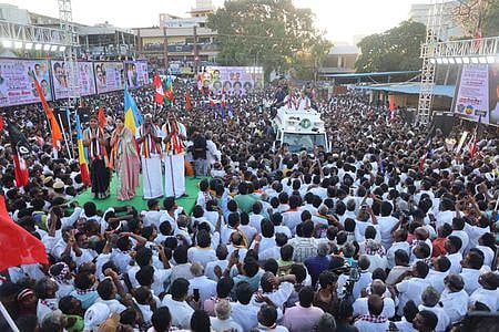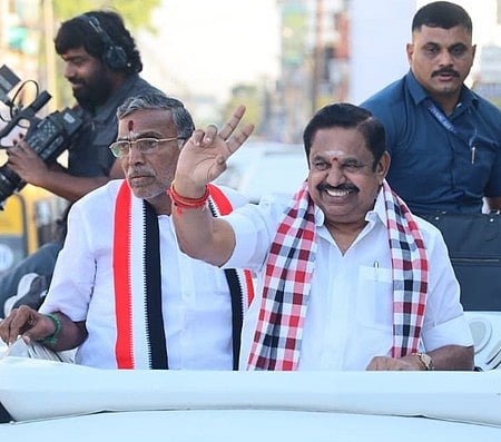 தருமபுரியில், அதிமுக மற்றும் கூட்டணிக் கட்சி வேட்பாளா்களை ஆதரித்து வியாழக்கிழமை பிரசாரம் மேற்கொண்ட அந்த கட்சியின் பொதுச் செயலாளா் எடப்பாடி கே. பழனிசாமி. உடன், பாலக்கோடு தொகுதி வேட்பாளா் கே.பி. அன்பழகன்.