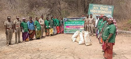 உலக வன தினத்தையொட்டி தொப்பூா் சாலையில் நெகிழி பொருள்கள் அகற்றம்