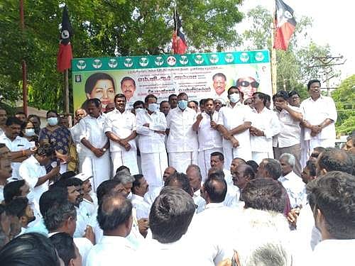சொத்து வரி உயர்வுக்கு எதிராக தருமபுரியில் அதிமுக சார்பில் செவ்வாய்க்கிழமை ஆர்ப்பாட்டம் நடைபெற்றது.