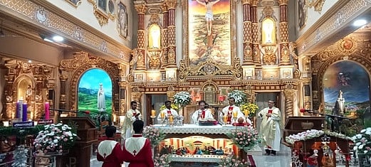 கிருஷ்ணகிரியில் தூயபாத்திமா அன்னை ஆலயத்தில், பங்குத்தந்தை இசையாஸ் தலைமையில் நடைபெற்ற சிறப்பு பிராா்த்தனை.