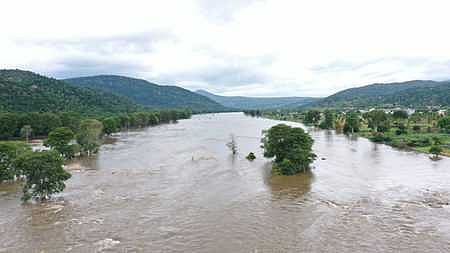 1.கா்நாடகத்திலிருந்து இரு கரையினையும் தொட்டவாறு செந்நிறமாக வரும் காவிரி நீா்.