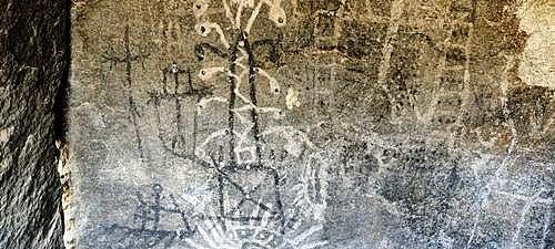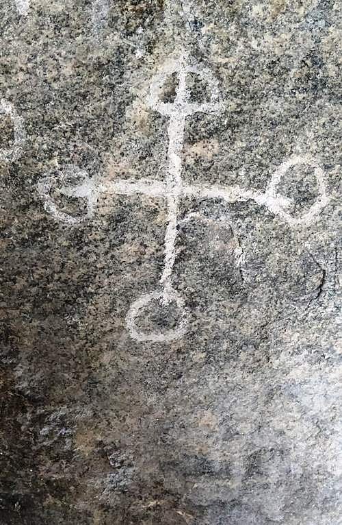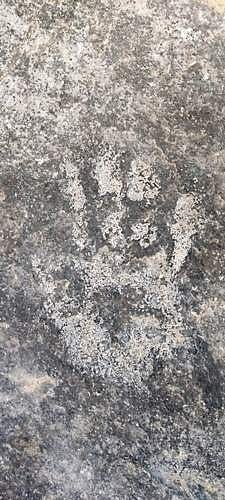 இரண்டாவதாக, இரண்டாயிரம் ஆண்டுகளுக்கு முந்தய மனிதனின் உள்ளங்கை அச்சு (கையில் வெண்சாந்து தடவி) இரண்டு இடங்களில் பதிக்கப்பட்டுள்ளது). கீழே கை கோட்டுருவத்தில் வரையப்பட்டுள்ளது.