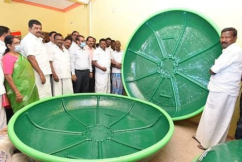பின்னர் பேசிய அமைச்சர், ரூ.312 லட்சத்தில் தொடங்கப்பட்ட இந்த திட்டத்தின் மூலம் 52 பயனாளிகள் நேரடியாக பயன்பெறுகின்றனர். ஆண்டிற்கு இதன் மூலம் 200 டன் மீன்கள் உற்பத்தி செய்ய இலக்கு நிர்ணயிக்கப்பட்டு, அதற்கு தேவையான மீன் தீவனம், மீன் குஞ்சுகள் ஆகியவற்றை 100 சதவீத மானியத்தில் வழங்கப்பட்டுள்ளது.
