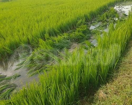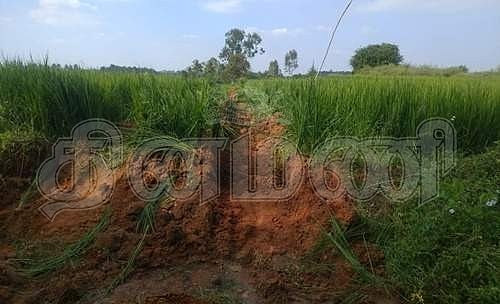 ஓசூரில் தார் சாலை போடும் பணிக்காக அழிக்கப்படும் நெல் பயிர்கள்.