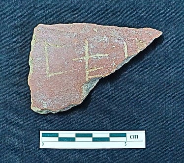 தமிழி எழுத்துகள் பொறிக்கப்பட்ட பானை ஓடு.