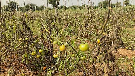 ஊத்தங்கரை வட்டாரத்தில் அண்மையில் பெய்த மழையால் செம்மை நோய்த் தாக்குதல் காரணமாக தக்காளி செடிகள் கருகி வருகின்றன.