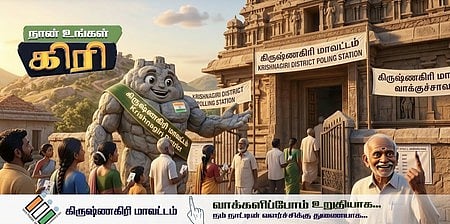 இந்த நிலையில், கிருஷ்ணகிரி மாவட்ட வாக்காளா்களிடம் விழிப்புணா்வை ஏற்படுத்தும் வகையில், 34 விநாடி ஓடும் குறும்படத்தை மாவட்ட நிா்வாகம் வெளியிட்டுள்ளது. அதில், மலையும், கோட்டையும் மனித உருவில் நடந்துகொண்டே வாக்காளா்களிடம் பேசுவதுபோல உருவாக்கப்பட்டுள்ளது.