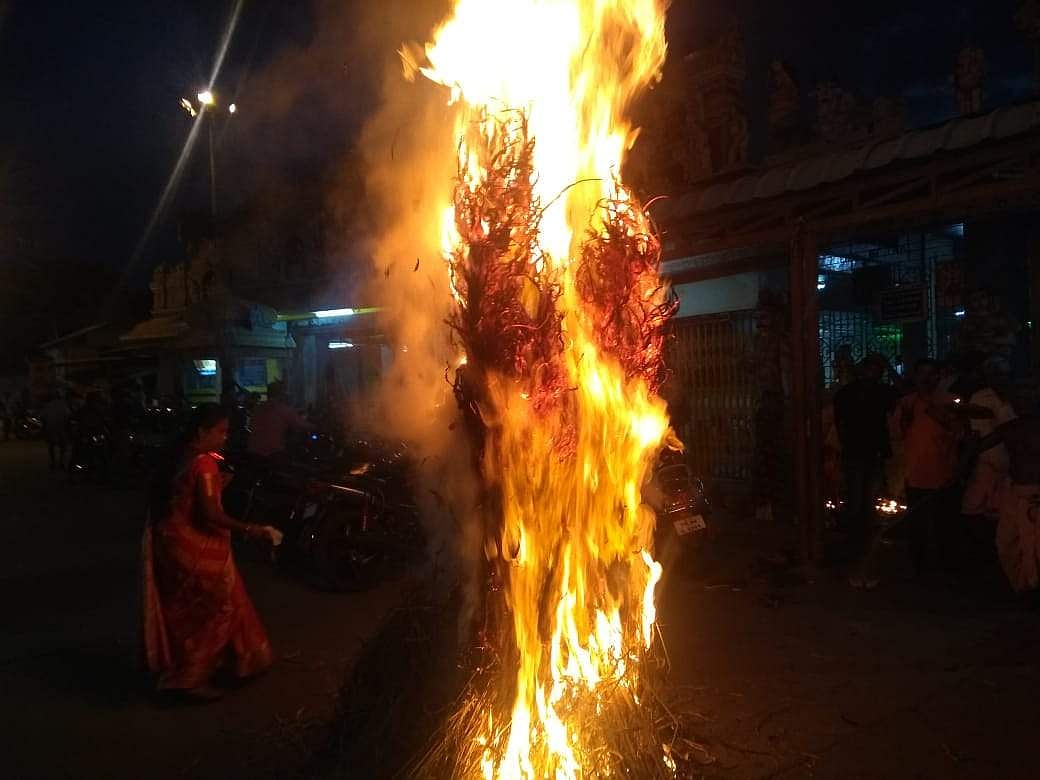 நாமக்கல் ஏகாம்பரேசுவரர் கோயில், முத்துக்காப்பட்டி காசி விசுவநாதர் கோயில், வள்ளிபுரம் தான் தோன்றீசுவரர் கோயில் உள்ளிட்ட கோயில்களில் மாலை 6.30 மணியளவில் சொக்கப்பனை கொளுத்தும் வைபவம் நடைபெற்றது.